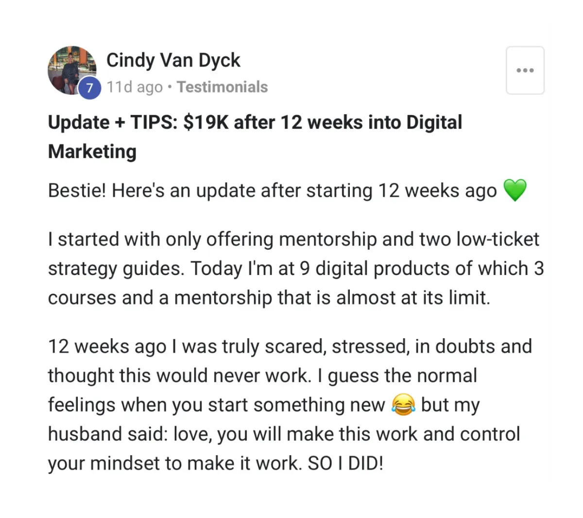 A mentoring group with more than 7 experts who have already achieved millions in revenue